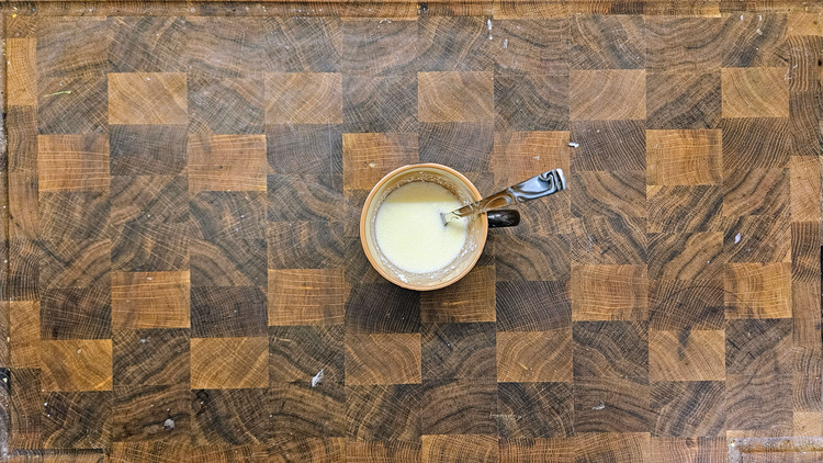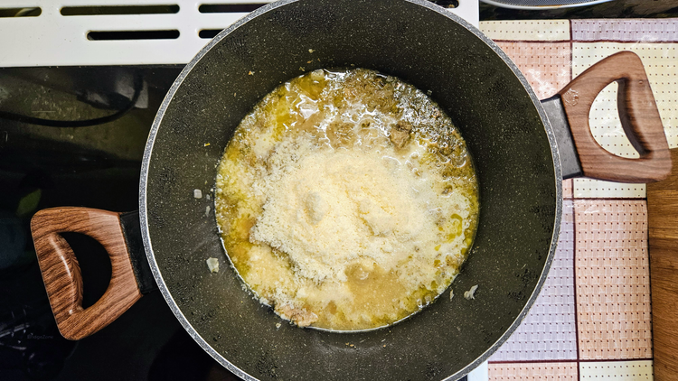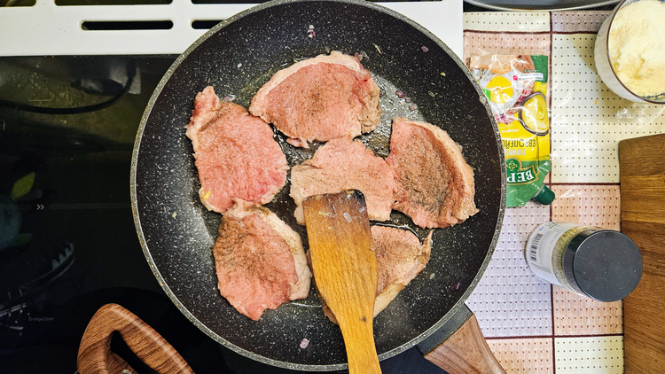 Присядьте, мандрівнику, та відпочиньте натомлені ноги. Сьогодні на вогні томиться свинина — відбита, посмажена до рум'яної скоринки, а потім тушкована в густій цибулевій підливі з гірчицею, чаберем та щедрою жменею чедеру. До неї — гречана каша, що вбрала в себе пару та тепло. Ситна страва для тих, хто повертається з довгої дороги — чи то з лісу, чи то з самого пекла.